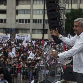 Propuso además al Presidente Enrique Peña Nieto un Gobierno de transición que busque la paz social rumbo a 2018, durante un mitin tras encabezar una marcha en la Ciudad de México en apoyo a los reclamos que realiza la Coordinadora Nacional de Trabajadores de la Educación en contra de la Reforma Educativa y la liberación de sus líderes. Se unió también a las demandas que hacen los padres de los 43 normalistas desaparecidos en Iguala; autoridades estimaron que 40 mil personas se manifestaron.