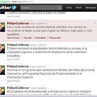 CIUDAD DE MÉXICO (09/ENE/2012).- El presidente Felipe Calderón ofreció en las redes sociales detalles sobre la gira que realizó este lunes en Monterrey, Nuevo León, donde anunció el Programa Nacional de Financiamiento a la Educación Superior.
