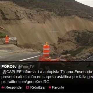 A través de su cuenta de Twitter, Capufe pidió: "Precaución. Cierre total a la circulación en la Aut. Tijuana-Ensenada km 93, en ambos sentidos, por afectaciones en la carpeta asfáltica".