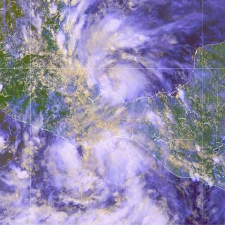 Los vientos máximos del sistema han bajado a 55 kilómetros por hora y debilitamiento adicional continuará mientras el sistema se mueva sobre tierra y se espera que para esta noche se degrade a un remanente de baja presión post-tropical.