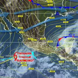 En tanto, “ Raymond” se aleja de costas nacionales, y sigue con fuerza de tormenta tropical, sus desprendimientos nubosos alcanzan los estados de Guerrero, Michoacán, Colima y Jalisco, lo que ocasiona precipitaciones de moderadas a muy fuertes en esas entidades y oleaje de hasta tres metros de altura en zonas de costa.