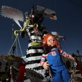 Además de la lideresa del SNTE, hubo muñecos de Carlos Salinas y Enrique Peña Nieto