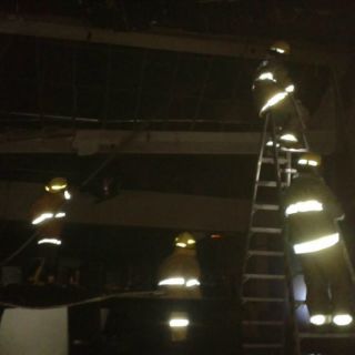 VILLAHERMOSA, TABASCO (01/DIC/2014).- Elementos del Cuerpo de Bomberos sofocaron el incendio en la Plaza Altabrisa que se registró esta mañana de lunes en la zona de cines, informó Protección Civil de
