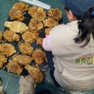 Los inspectores federales de la Delegación de la Profepa en la entidad revisaron las piezas e identificaron que el correspondía a 375 vejigas natatorias (buches) de Totoaba macdonaldi.