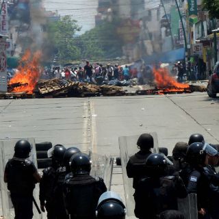 Araujo González, quien colabora con la Agencia Notimex, fue trasladado a un hospital de Tuxtla Gutiérrez donde su salud es reportada como delicada pero estable, luego de que un cohetón, lanzado por los manifestantes, lo lesionó provocándole una quemadura de tercer grado.