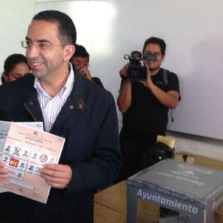 PUEBLA, PUEBLA (07/JUN/2013).- El portavoz de la coalición Puebla Unida (PAN, PRD, Nueva Alianza y el partido local Compromiso por Puebla), Javier Lozano Alarcón (PAN), emitió su voto aun cuando no aparece en la lista nominal.