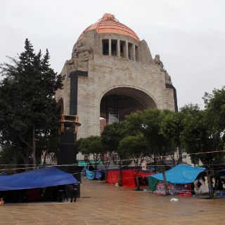 CNTE) se preparan para realizar una manifestación de su campamento en el Monumento a la Revolución hacia la Secretaría de Gobernación (Segob).