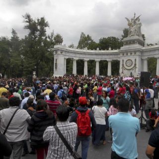 Los manifestantes marchan por Plaza de la República para tomar Bucareli.
