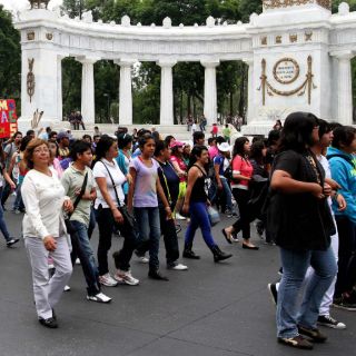 Desde hace poco más de media hora, los maestros llegaron hasta este punto y ocuparon las escalinatas del Monumento a Benito Juárez.