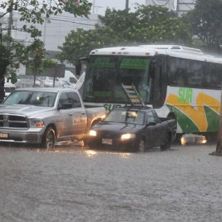 Las lluvias han dificultado el tránsito vehicular en algunas partes de la capital tabasqueña.