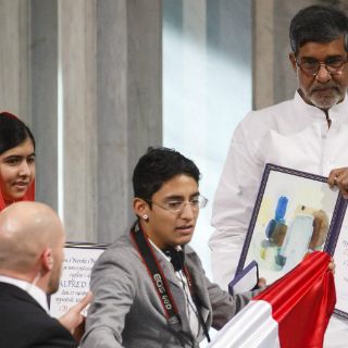 CIUDAD DE MÉXICO (11/DIC/2014).- El joven que interrumpió la entrega del Premio Nobel de la Paz al acercarse a los galardonados con una bandera nacional con una mancha, Adán Cortés, aseguró que volvería a actuar de la misma manera.
