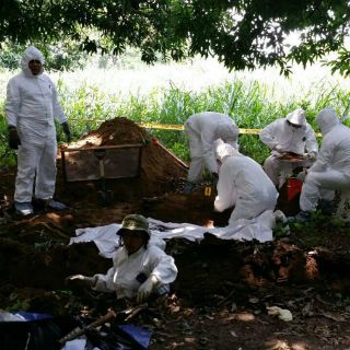 La dependencia informó que la fosa en Tumbiscatio fue localizada en un predio de la comunidad de Playitas, e indicó que los cuerpos se encuentran en avanzado estado de descomposición, aunque en algunos se pueden apreciar lesiones de arma de fuego.