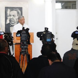 El candidato presidencial por los partidos del Trabajo (PT), de la Revolución Democrática (PRD) y Movimiento Ciudadano (MC) hizo una escala en el aeropuerto "General Francisco Javier Mina", al filo de las 8:40 horas de hoy para después dirigirse al vecino estado de San Luis Potosí.