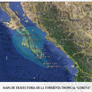MIAMI, ESTADOS UNIDOS (06/SEP/2013).- La tormenta tropical ''Lorena'' se desplaza en forma paralela a la costa mexicana del Pacífico y se prevé que toque tierra esta noche en la costa oeste de