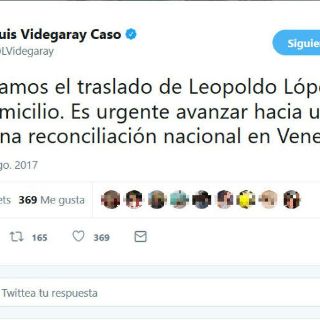 CIUDAD DE MÉXICO (06/AGO/2017).- El canciller mexicano, Luis Videgaray, escribió en su cuenta de Twitter un mensaje en el que celebra el regreso a casa del líder opositor venezolano, Leopoldo López, tras volver a casa por la condena de arraigo domiciliario que cumple.
