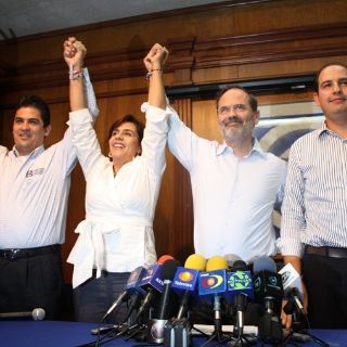 En conferencia de prensa, en la sede del PAN-Michoacán, el presidente nacional de Acción Nacional le levantó la mano a la hermana del Presidente Felipe Calderón como la precandidata ganadora del proceso interno que este domingo concluyó.