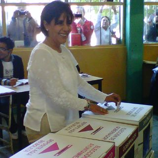 Con una sonrisa en su rostro y muy relajada se mostró la aspirante a la gobernatura del estado de Michoacán, quien tras efectuar su voto dio una entrevista con medios de comunicación tanto locales como nacionales donde dijo que está ''tranquila, entusiasmada por el proceso que se vive en la entidad'', y negó rotundamente que en caso de ganar se pueda hablar de una elección de estado,sino democrática, esto pese a la manifestación de apoyo del gabinete federal, que encabeza su hermano el Presidende Felipe Calderón Hinojosa.