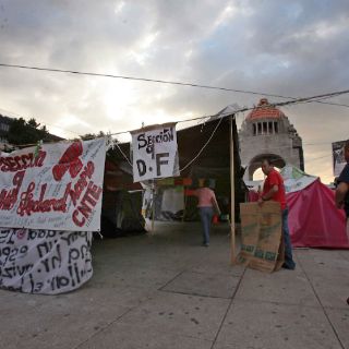 Los maestros de la CNTE continúan bloqueando el acceso por Plaza de la República en el Monumento a la revolución