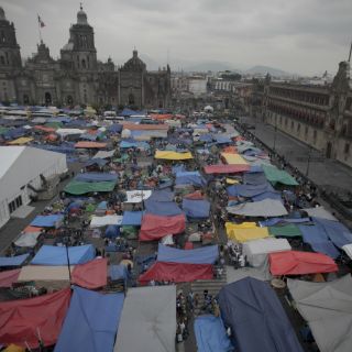 Las casas de campaña y plásticos que los manifestantes instalaron ocupa casi la totalidad de la plaza de la Constitución. Incluso, rodean las carpas que el gobierno capitalino montó para el Guardián Urbano y las salas de cine 3D que no han sido desmontadas.