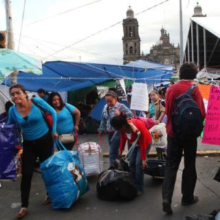 Esta mañana de lunes, los maestros realizan actividades que se volvieron cotidianas en la plancha del Zócalo capitalino, tales como el arribo en algunos camiones, el desayuno en cocinas improvisadas y el aseo, junto a las jardineras.