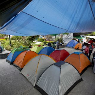 Las casas de campaña de los profesores obstruyen la plancha del zócalo. Los maestros utilizan el edificio del ayuntamiento, que tomaron a mediados de octubre para bañarse y hacer sus necesidades fisiológicas.