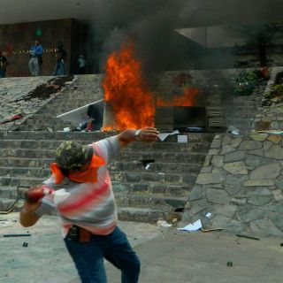CHILPANCINGO, GUERRERO (25/ABR/2013).- Tras los disturbios de ayer miércoles en las sedes del PRI, PAN, PRD y Movimiento Ciudadano, los maestros disidentes de Guerrero levantaron una barricada en las inmediaciones de su plantón en la Avenida Ruffo Figueroa.