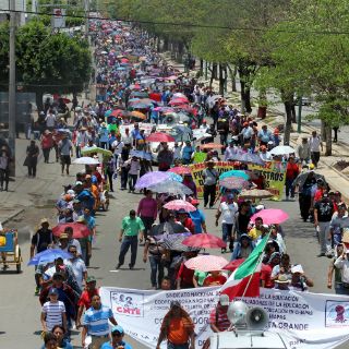 Este sábado los docentes realizaron una marcha de la fuente de la Diana Cazadora, en el oriente de la ciudad, precedidos de pancartas alusivas al movimiento: “Si hay evaluaciones, tampoco habrá elecciones”, “Presentación con vida de los 43 normalistas de Ayotzinapa”, y se concentraron frente al Palacio de Gobierno, donde mantienen sus campamentos y la sede de operaciones.