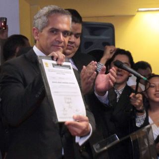 A las 11:00 horas de este domingo, Miguel Ángel Mancera acudió a las instalaciones del PRD nacional en Benjamín Franklin, donde entregó la documentación para solicitar su registro como candidato ciudadano, el cual le fue otorgado por la Comisión Nacional Electoral.