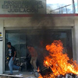 Atrás del Congreso, en las inmediaciones del Río Huacapan, otro grupo quemó la oficina del programa de estímulo a la jubilación.