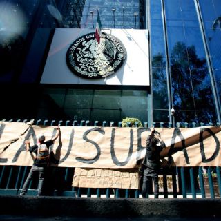 CIUDAD DE MÉXICO (06/NOV/2014).- Un grupo de manifestantes que protestaban frente a las instalaciones de la Procuraduría General de República (PGR) se retiraron del lugar, luego de bloquear el acceso principal al edificio por más de cuatro horas.