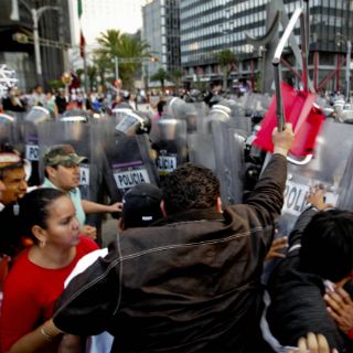 El primer grupo de manifestantes conformado por integrantes de la Coordinadora Nacional de Trabajadores de la Educación y del Sindicato Mexicano de Electricistas fueron los primeros en arribar por la calle de Bucareli; otro grupo se manifestó por la calle de Atenas y se espera ya la llegada de la organización Antorcha Popular.