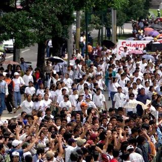 XALAPA, VERACRUZ (05/MAR/2012).- Al grito de "tu hijo puede ser el siguiente", cientos de personas e integrantes de la comunidad universitaria de Veracruz marcharon por las principales calles de esta capital para exigir la aparición de decenas de desaparecidos, entre ellos el hijo de un investigador de la Universidad Veracruzana (UV).