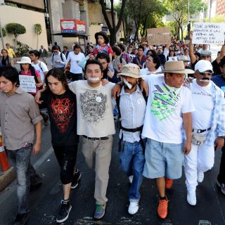 Los manifestantes piden la derogación del artículo 362 del Código Penal del Distrito Federal; las consignas son libertad absolutoria para los 14 procesados por el delito de ataques a la paz pública.