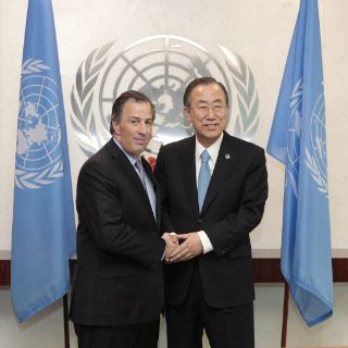 "Uno de los compromisos del programa del trabajo del Presidente Enrique Peña Nieto es impulsar a México como un actor con responsabilidad global", dijo Meade tras su encuentro con Ban.