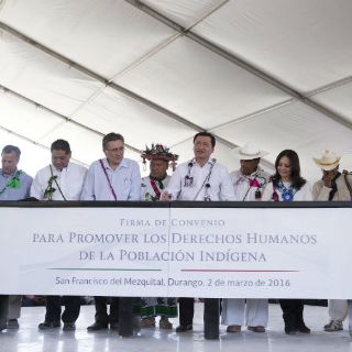 SAN FRANCISCO DEL MEZQUITAL, DURANGO (02/MAR/2016).- México busca garantizar los derechos de al menos 15 millones de personas, con la firma del "Convenio para asegurar los derechos humanos de los indígenas" firmado por los titulares
