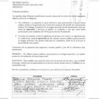 Finalmente, los panistas expresaron a Anaya que confían “en su buena fe y que velará por los interese del partido”.