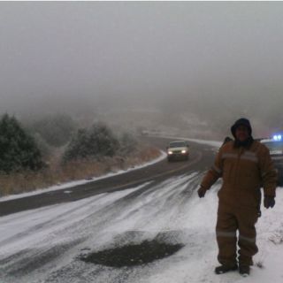 En otro tuit, señaló que la carretera federal 02 está cerrada, a la altura del Puerto San Antonio, para todo tipo de vehículos a consecuencia de una nevada.