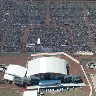 Fieles de diversas ciudades y más allá de las fronteras llegaron desde muchas horas antes para alcanzar un buen espacio en los campos del Centro de Estudios de Ecatepec, donde se montó un enorme templete en forma de medio círculo que acogió el altar del Pontífice.