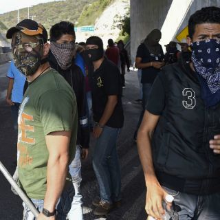 Para llegar a Acapulco, los estudiantes atravesaron un tráiler por la vía de cobro hacia la Punta Diamante.