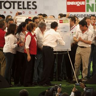Previo al acto en el Lienzo Charro, hubo en un hotel una reunión de todos los candidatos con la estructura de Enrique Peña Nieto, para afinar la estrategia para llevar a votar a la gente por el PRI el próximo 1 de julio.
