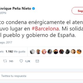 CIUDAD DE MÉXICO (17/AGO/2017).- El Presidente Enrique Peña Nieto condenó el atentado en el que una persona falleció y otras 32 resultaron heridas en Barcelona.