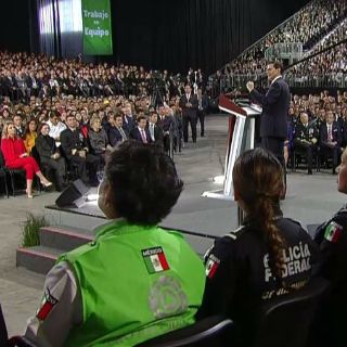 La tarde de este jueves, como orador único del evento "4 Años Transformando a México", el Mandatario realizó un recuento de logros de su gobierno sobre los ejes de México en Paz, México Incluyente, México con Educación de Calidad, México Prospero y México con responsabilidad global.