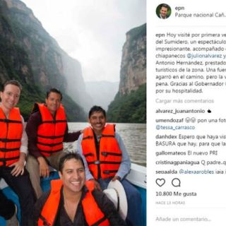 En la foto aparecía el mandatario junto al gobernador del estado, Manuel Velasco, y el cantante Julión Álvarez, quienes habían disfrutado juntos de un paseo por el emblemático Cañón del Sumidero. Se sabe que el artista norteño es originario del estado chiapaneco.