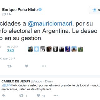 CIUDAD DE MÉXIC (22/NOV/2015).- El Presidente Enrique Peña Nieto felicitó a Mauricio Macri por su triunfo en las elecciones presidenciales que se realizaron este domingo en Argentina.