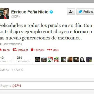 "Felicidades a todos los papás en su día. Con su trabajo y ejemplo contribuyen a formar a las nuevas generaciones de mexicanos", tuiteó Peña Nieto ( @EPN).
