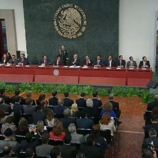 Al evento que se celebrará en el Salón Adolfo López Mateos de la residencia de Los Pinos, asisten el secretario general de la Organización para la Cooperación y el Desarrollo Económico (OCDE), José Ángel Gurría; el canciller Luis Videgaray y el secretario de Turismo, Enrique de la Madrid.