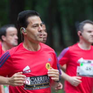 Enrique Peña Nieto fue entrevistado por los reporteros, después de que participó en la sexta carrera Molino del Rey, que organiza el Estado Mayor Presidencial.