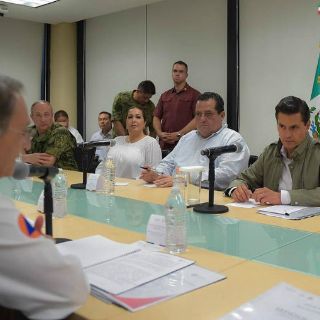 El Mandatario está siendo acompañado por su esposa, la señora Angélica Rivera de Peña; los secretaros de Defensa, Salvador Cienfuegos; de Marina, Vidal Soberón; y de Gobernación, Miguel Ángel Osorio Chong; así como por el titular de Protección Civil, Luis Felipe Puente.