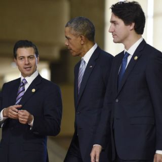 Barack Obama; de México, Enrique Peña Nieto, y el primer ministro de Canadá,