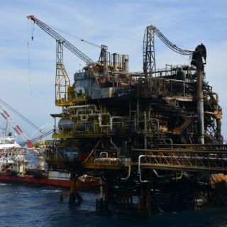 accidente en la plataforma Abkatun A-Permanente, personal de Pemex realizó este jueves recorridos por la estructura.